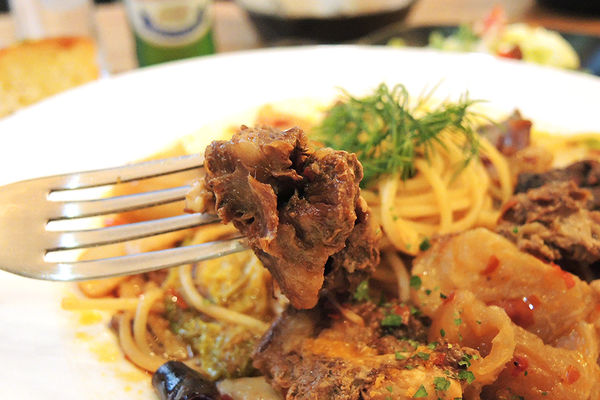 如果要想像這道料理的口感,可說是中式牛肉麵的麵條換成義大利麵,沒有太大違和感很安全