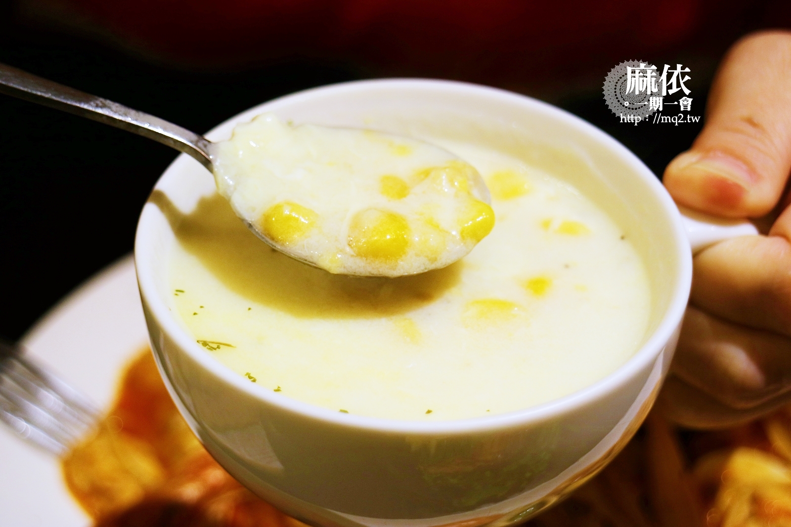 湯品有滿滿的玉米,我們都喜歡這樣勾芡不重的稠度,一開始喝的時候覺得味道有些淡,可是搭配餐點一起享用,越喝越好喝!
