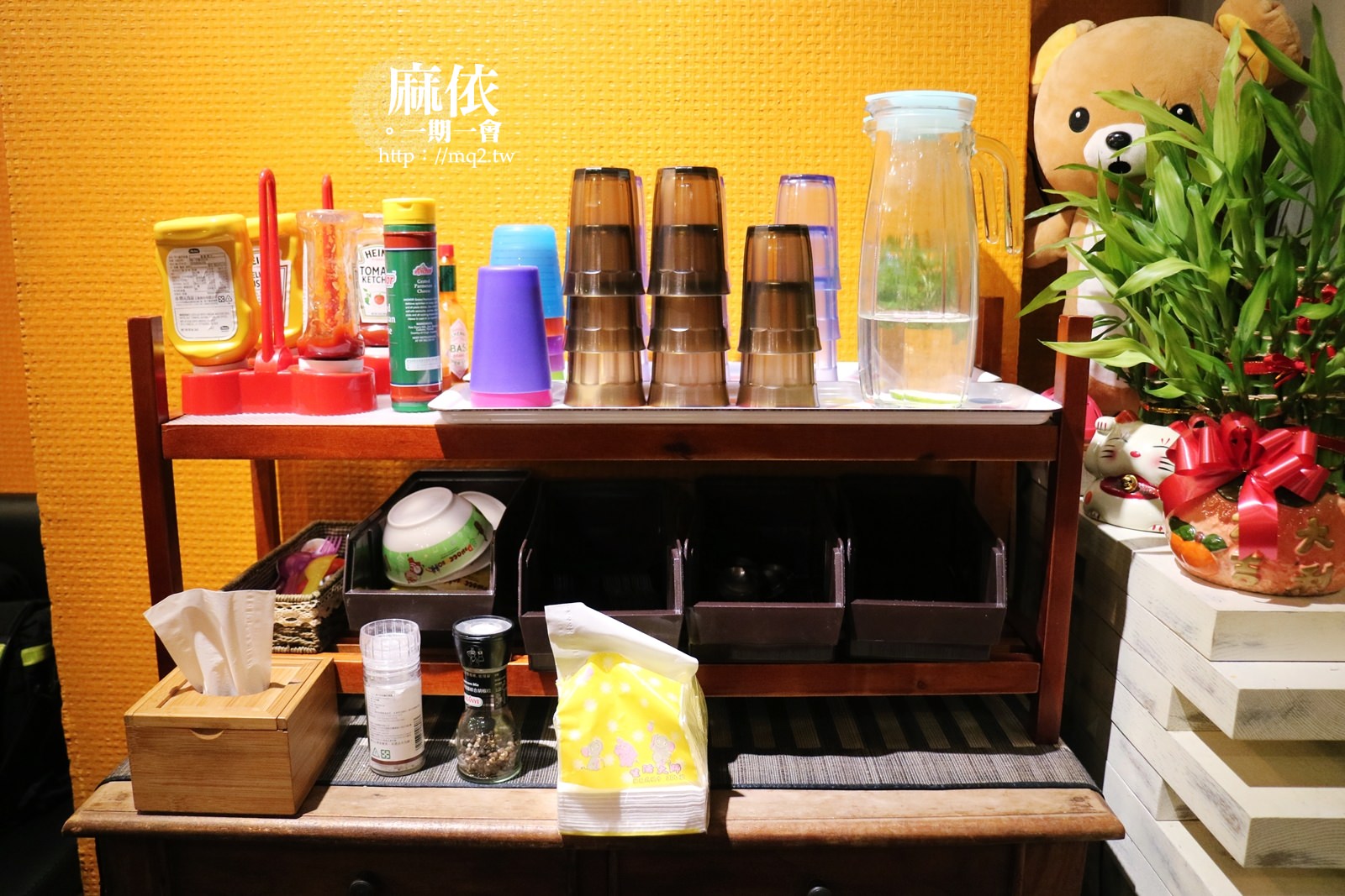餐具、醬料、杯水自取喔!很特別的是,一般都要另外特別跟店家要兒童餐具,這邊則直接擺上,我想因為老闆夫婦有個可愛的女兒,所以也很貼心的這麼準備了。(感覺得出老闆夫婦非常細心~)