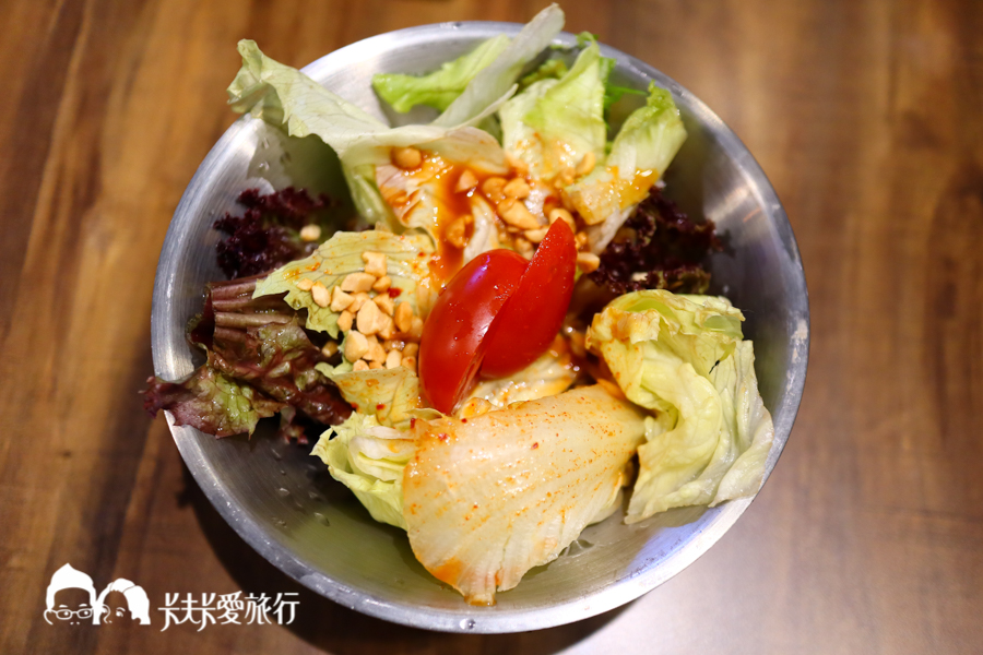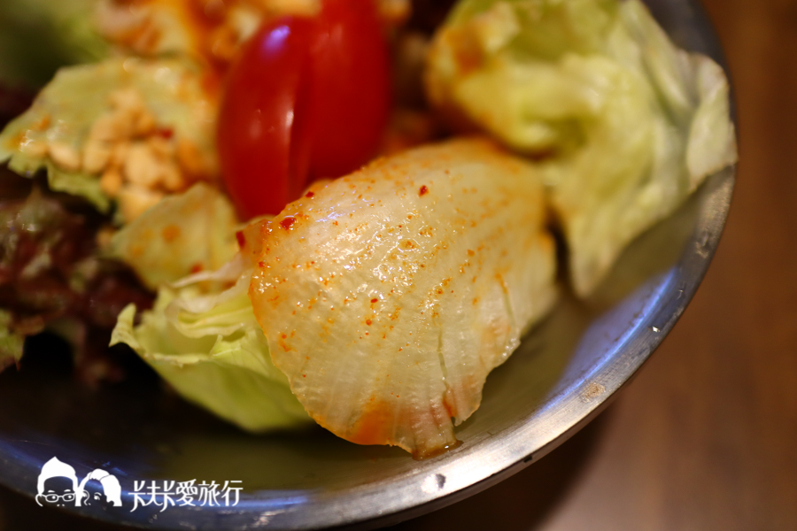 花生與韓式泡菜醬汁,微辣帶出生菜的甜味