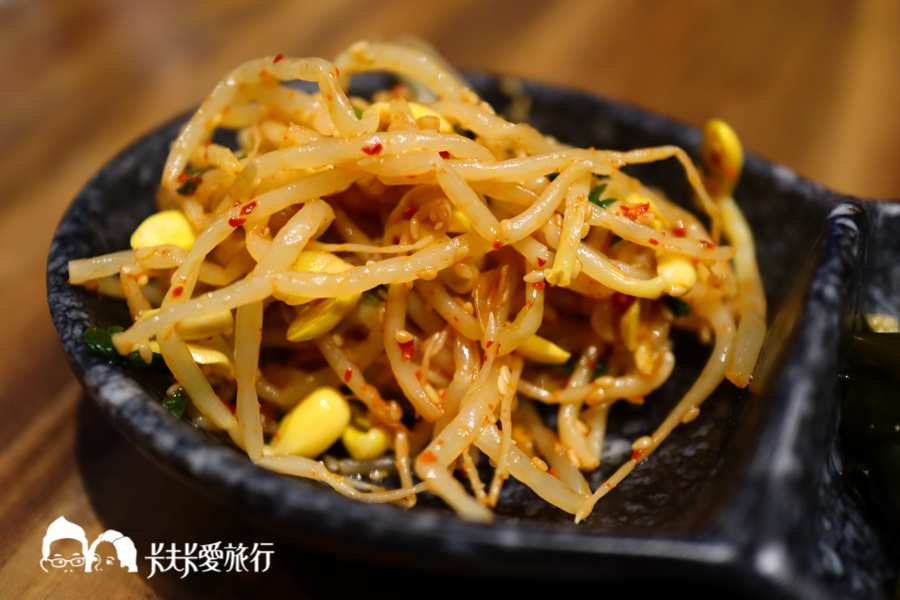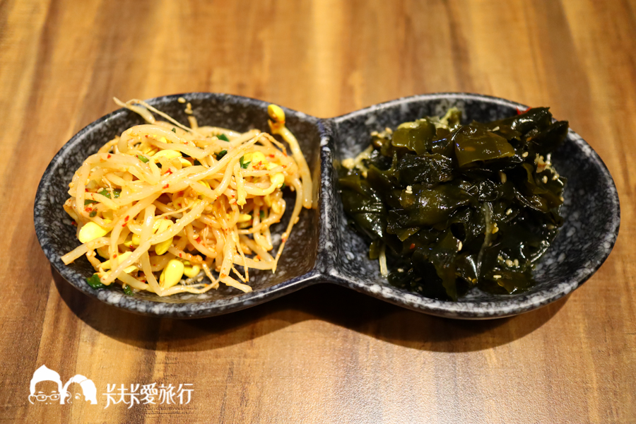小菜是韓式料理必備的餐前開胃菜,築夢寒食今天的小菜是黃豆芽與海帶