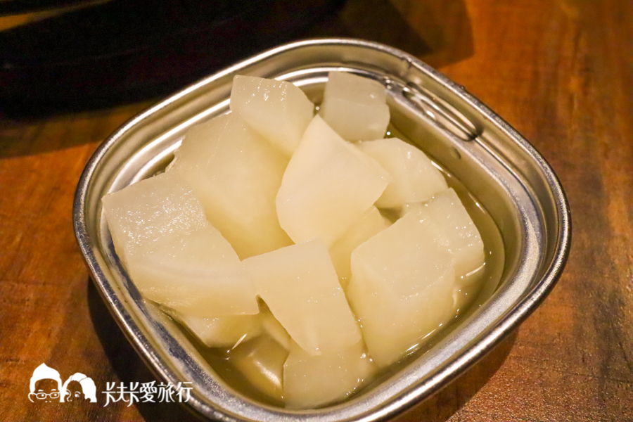 炸雞附上一小碟醃蘿蔔,可以去除油膩感,讓味覺更清晰