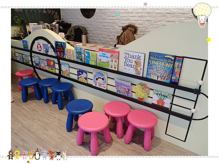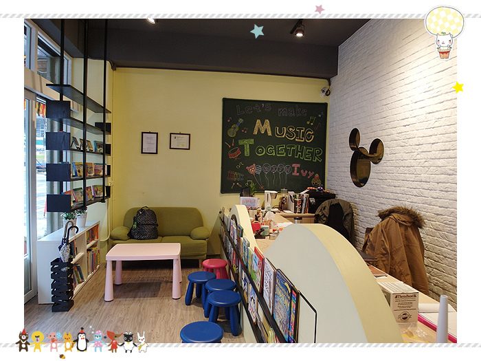 一進門,就看到教室的櫃台,前方有一整排的故事書,旁邊還有一個小小的閱讀區