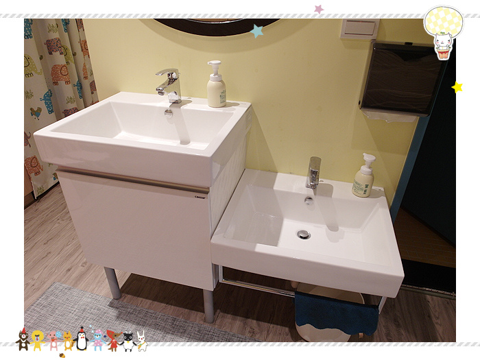 洗手檯也是親子型的,一高一低,進教室前要洗手,洗好手才進入教室開始上課
