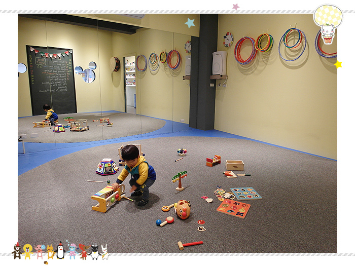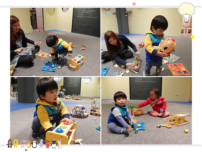 讓小威猛可以先在教室裡頭玩一下玩具,放鬆心情準備上課