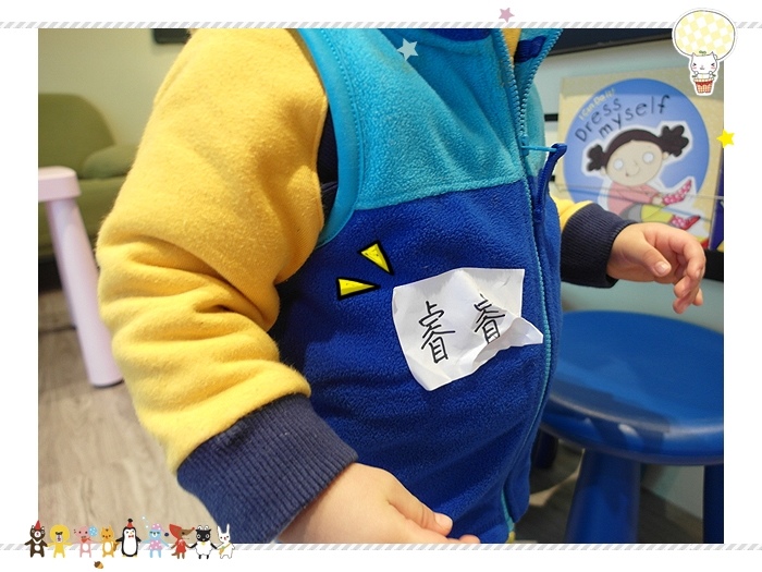 因為小威猛是第一次上課,所以到了沒多久老師就先幫他貼上一張名字貼紙 (睿睿是小威猛的小名)