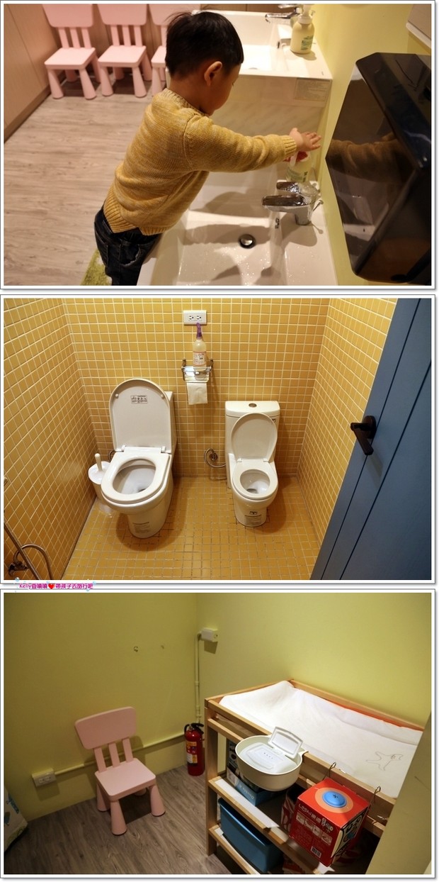 廁所有親子馬桶,如果比較小一點的小朋友,也有提供尿布檯喔~