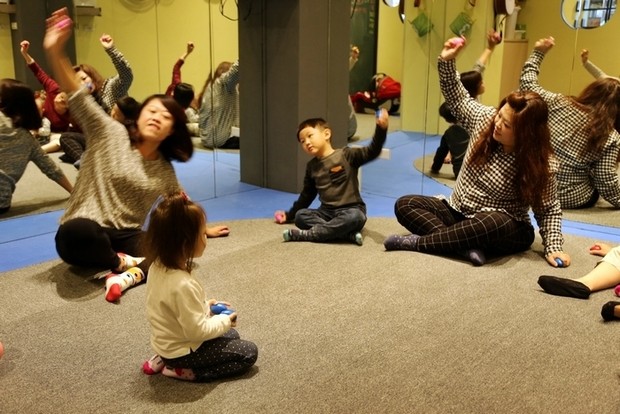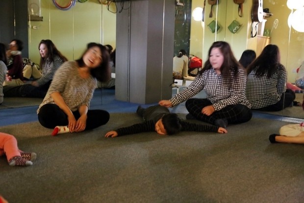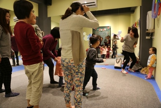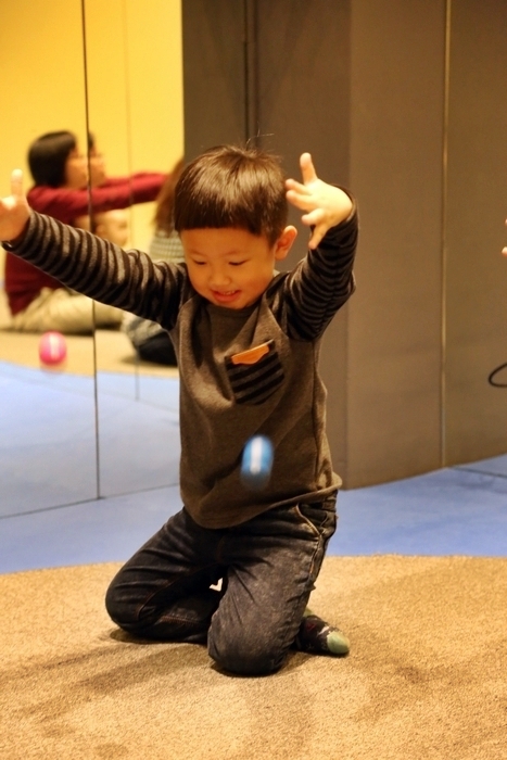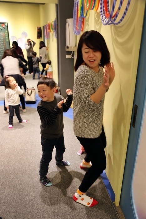 課程也不單單是坐在地板上活動,而是整個教室跑透透~~呵呵