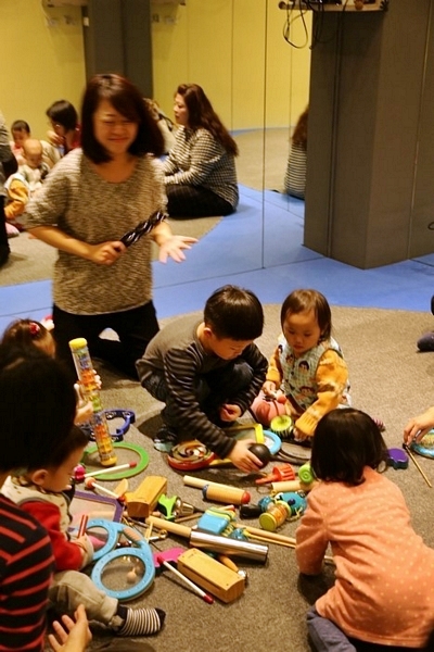 雖然孩子們對道具的反應很好,但小孩容易因為太注意手上的樂器而忽略掉了老師的音樂!所以,樂器對於這堂課來說只是輔助