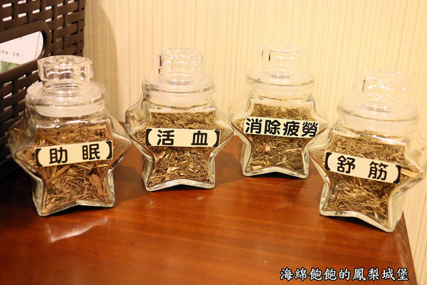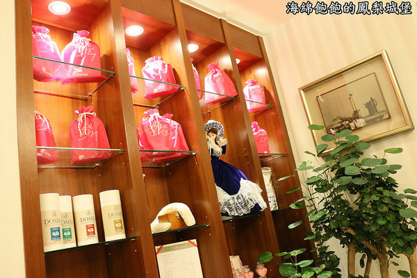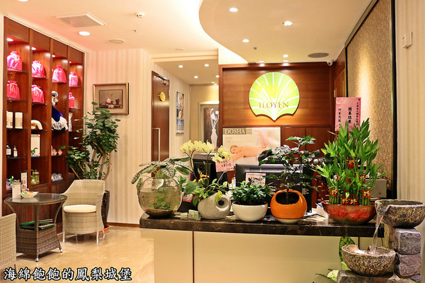 櫃子裡陳列艾樂源足體養身會館使用的商品