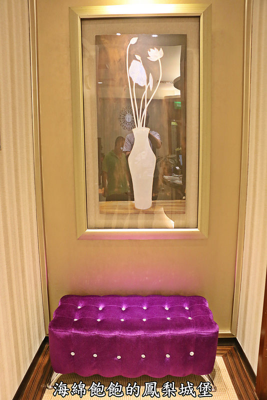 坐在漂亮的絨布椅,海綿媽說她今天很貴婦~
