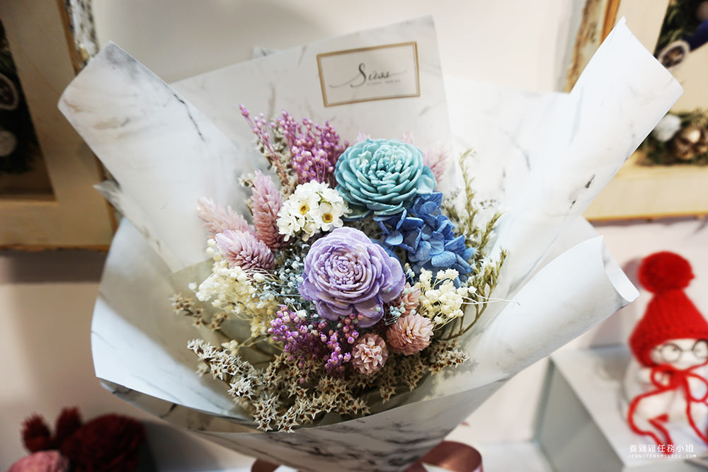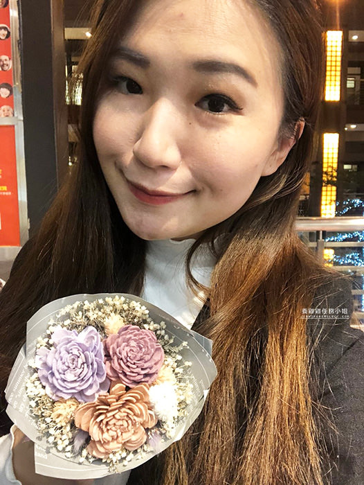 店員也和我解說,敘思用的永生花,是日本的。日本的永生花是在真花開得最美的時候,以日本專利技術製作而成。所以日本的永生花可以擁有鮮艷的色澤及原有的彈性,完全不需澆水照顧,保持乾燥可以維持2-3年。