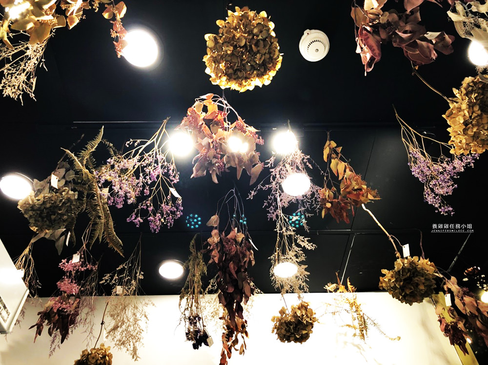走進敘思信義店後,會發現他們連deco都很講究,天花板滿滿的永生花,真是夢幻至極。