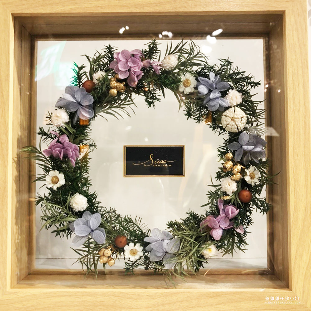 如果想要把永生花掛在牆上的朋友,也可以選這種浪漫的花圈,用原木色的畫框框起來,可以保持永生花不沾染上灰塵,我自己下次想把這個帶回家。