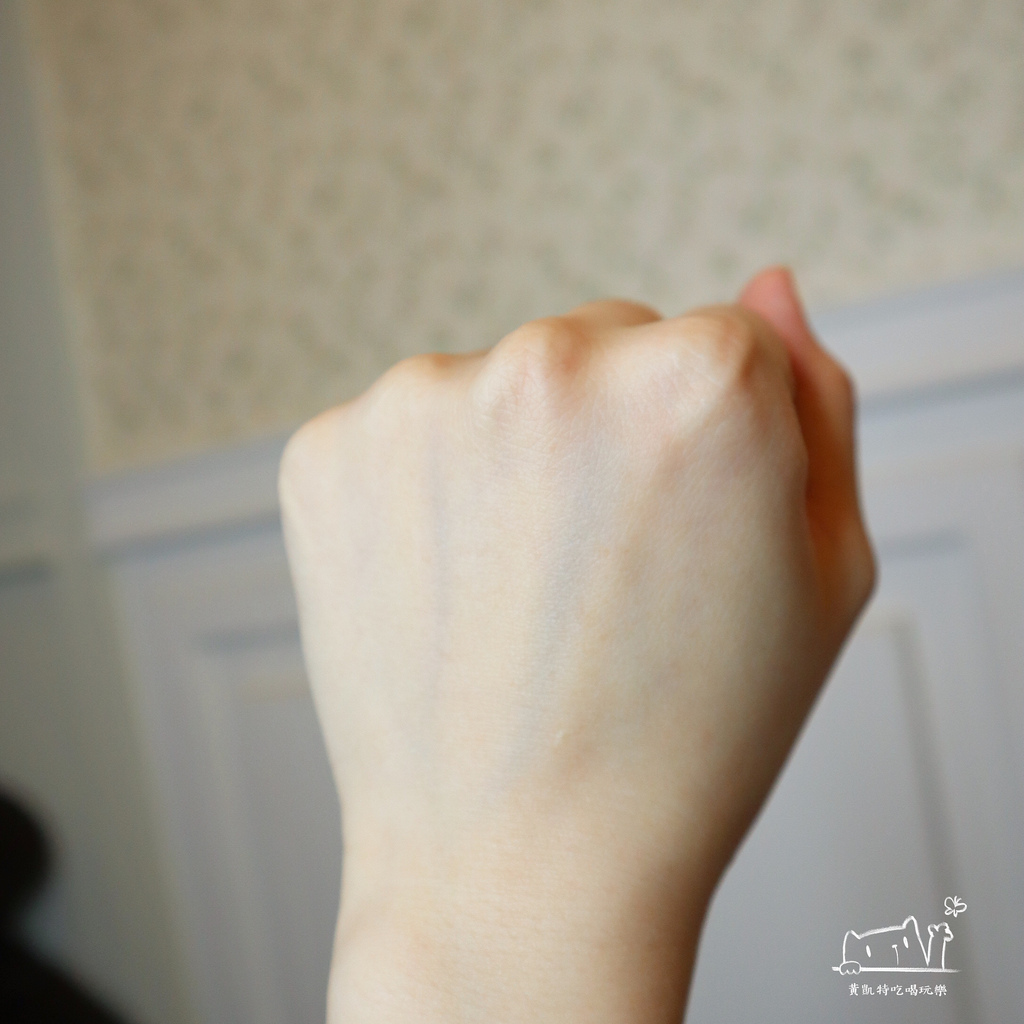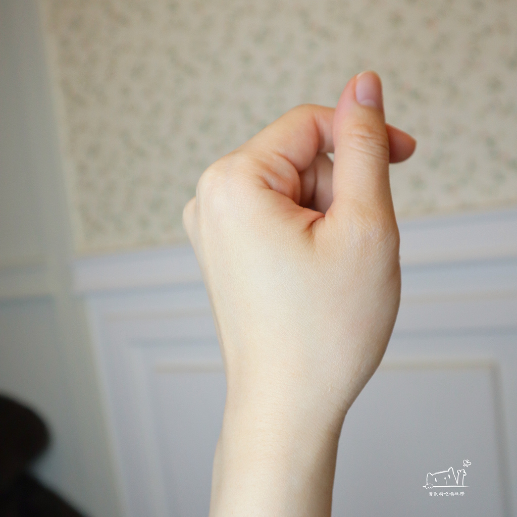 ▲輕輕按壓藍銅雙效潤澤滋養乳至手背上,