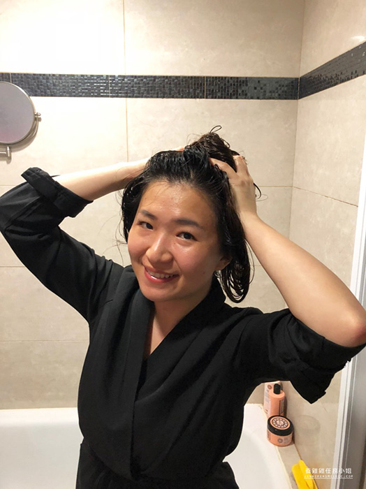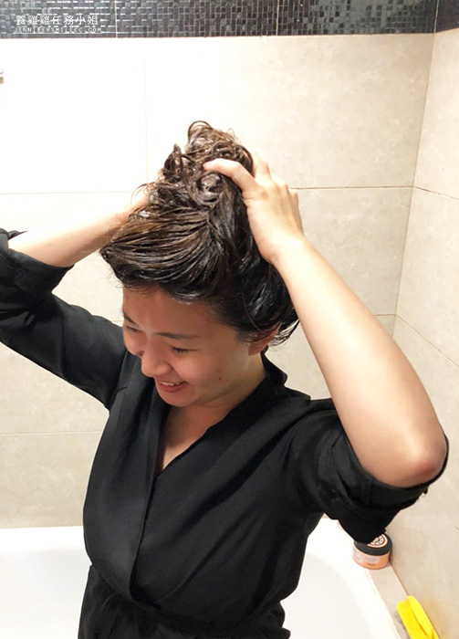 使用北歐極品 maria nila HL養髮組合的步驟和方式很簡單,首先先用風華洗髮乳潔淨頭皮和頭髮。洗髮乳的量看個人喜好,我覺得這款洗髮乳泡泡滿多也很細緻,以指腹輕柔按摩頭皮髮絲後清水洗淨就可以了。