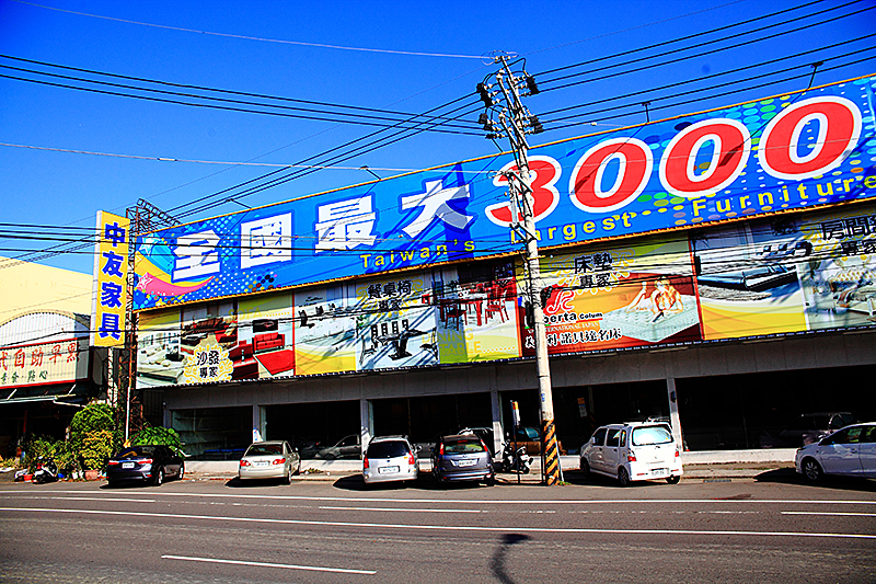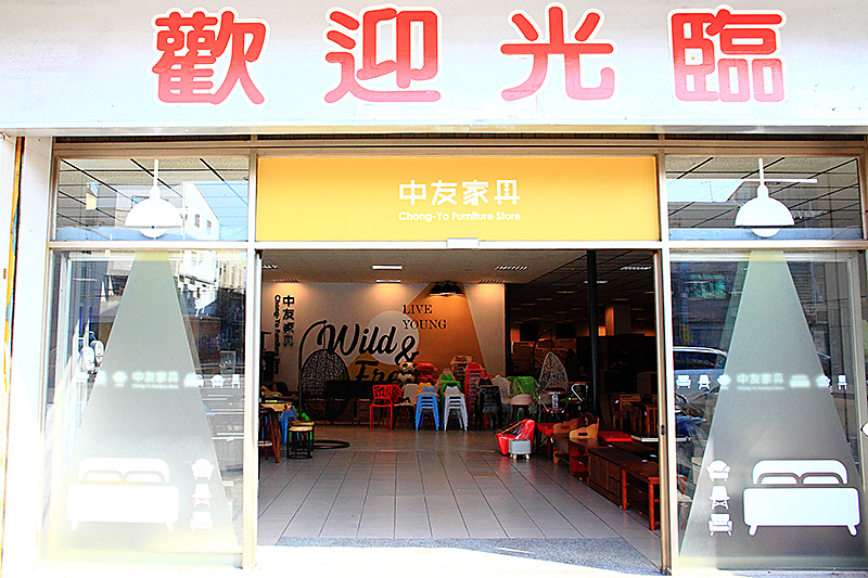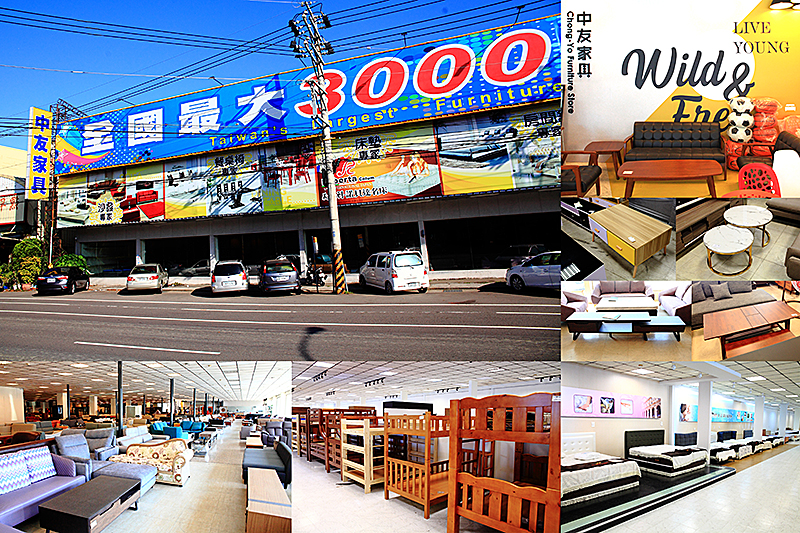 從大面玻璃進入,這裡就是【台中烏日】中友家具為全台最大之家具發貨中心,主打CP最高的家具商品,希望能為客人找到最理想及最經濟實惠的家具用品。主要銷售沙發、茶几、餐桌、床組及床墊,擁有全國最大3000坪傢俱賣場,可悠閒地挑選屬於自己喜愛的家具陳列,自在參觀,買到賺到。