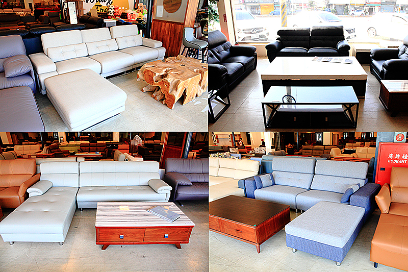 【台中烏日】中友家具,種類非常多,主要是一棟兩層樓的家具工廠,依照不同生活家具分門別類在一整大區,一樓是客廳類的家具為主,二樓則是寢具床、櫥櫃等系列,一入內可見左手邊是客廳沙發家具裝潢,偏向現代感、北歐風、工業風等多款沙發,後半部則是用木質家具、餐桌茶几、鞋櫃為打造。