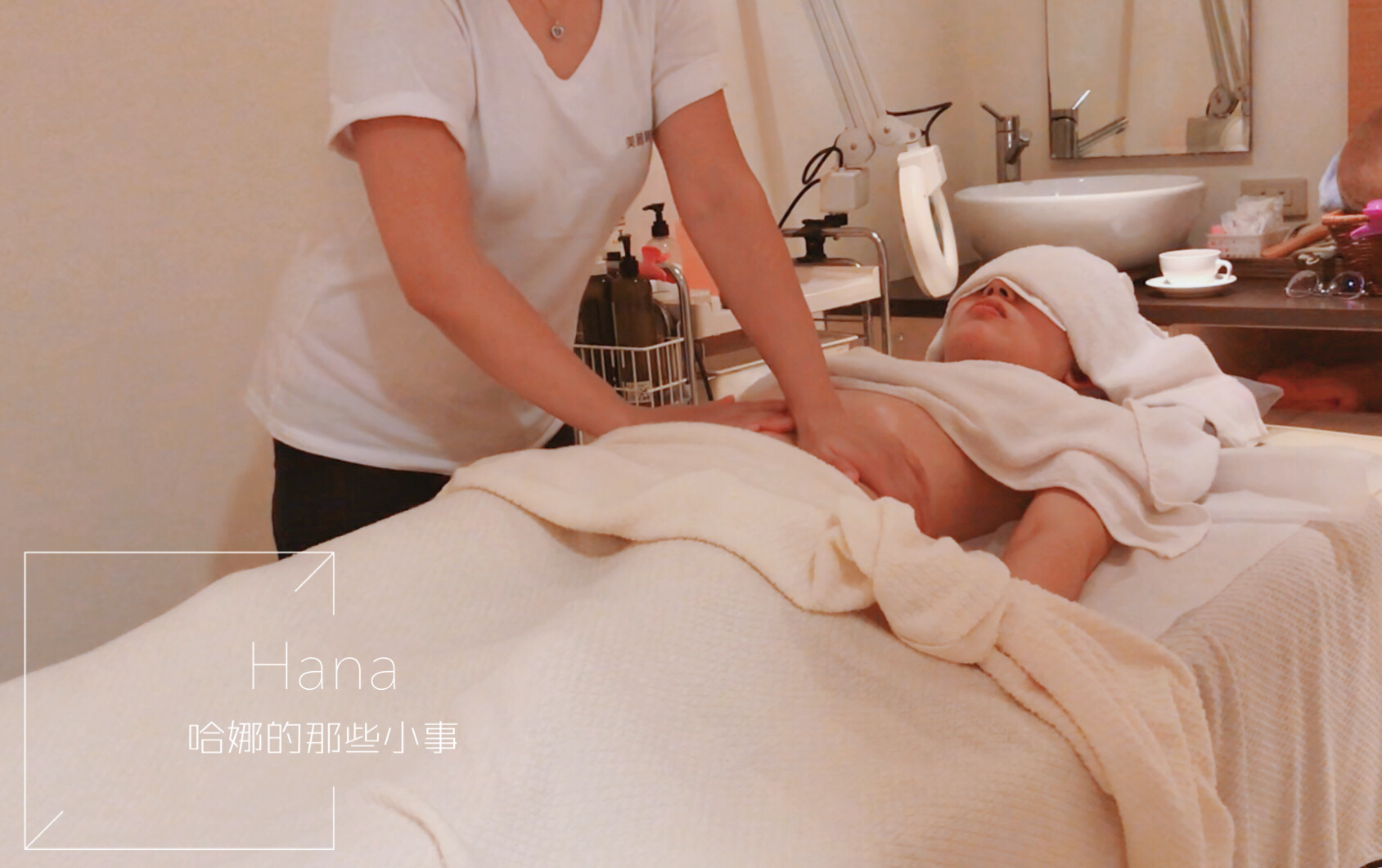 全身精油按摩完後,最後美容師會帶到肩頸頭部的按摩,