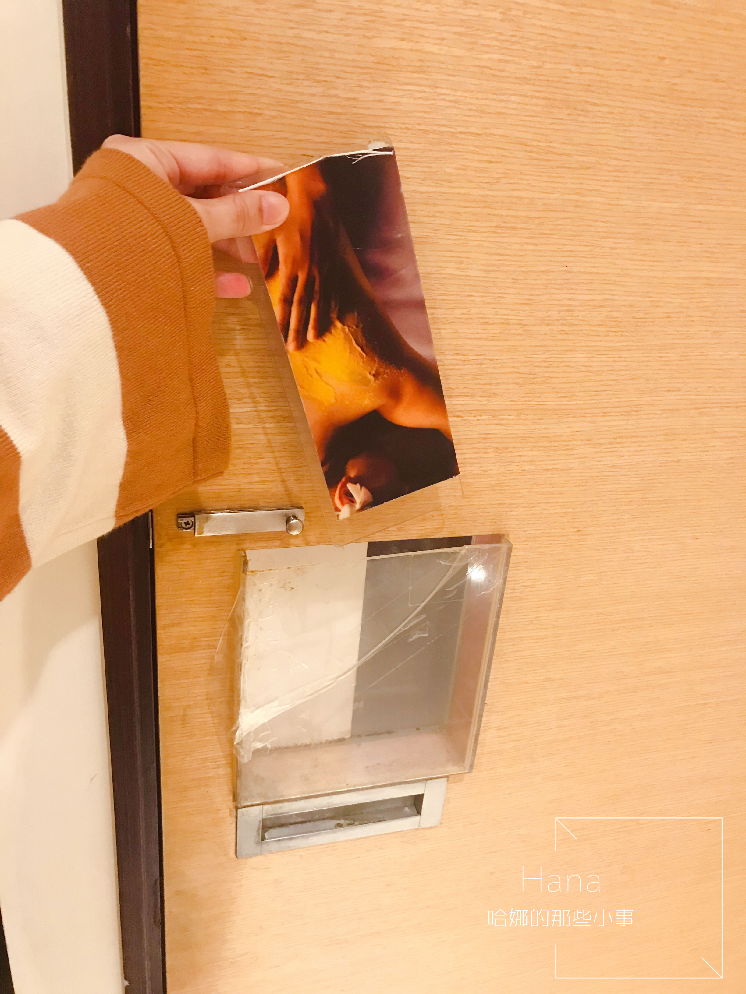 換好浴衣後將床上的小牌子放入門上的壓克力盒,