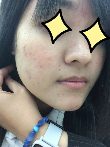 來看看我們今天的待宰羔羊~阿 不是 是今天的主角,朋友的肌膚屬於痘痘肌,經過多年的錯誤保養與摧殘,也留下的不少疤痕