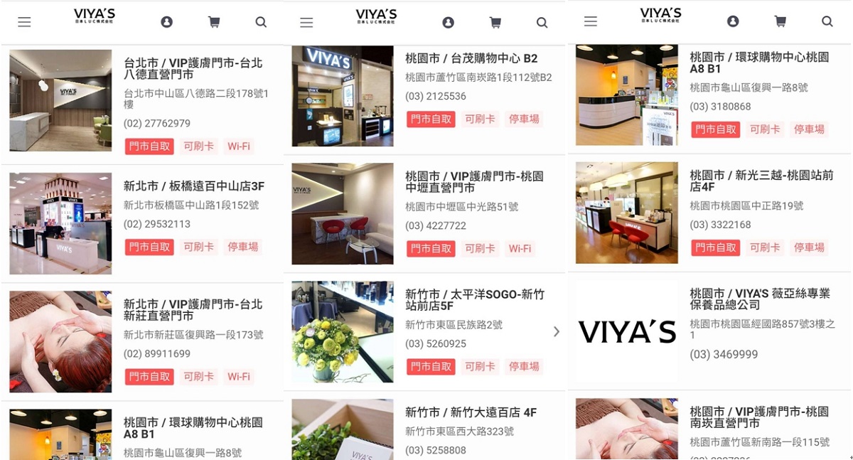目前於北台灣共有11處「VIYA’S 薇亞絲」銷售點,台北市與新北新莊 各有一間直營門市