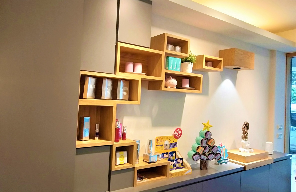 「VIYA’S 薇亞絲」日系暖色調的精緻空間 即使牆面也充滿巧思,擺放各樣保養品,空氣中也瀰漫著令人放鬆的香氣