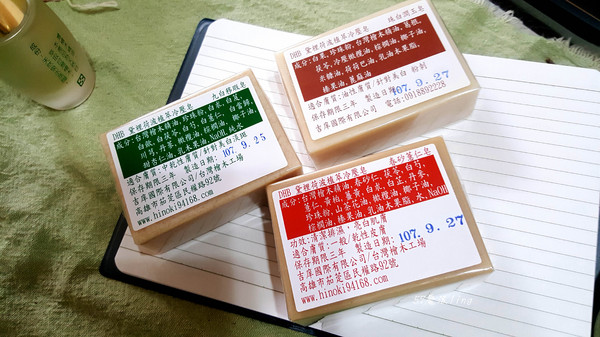 每一款手工冷壓皂後都有中文成分說明