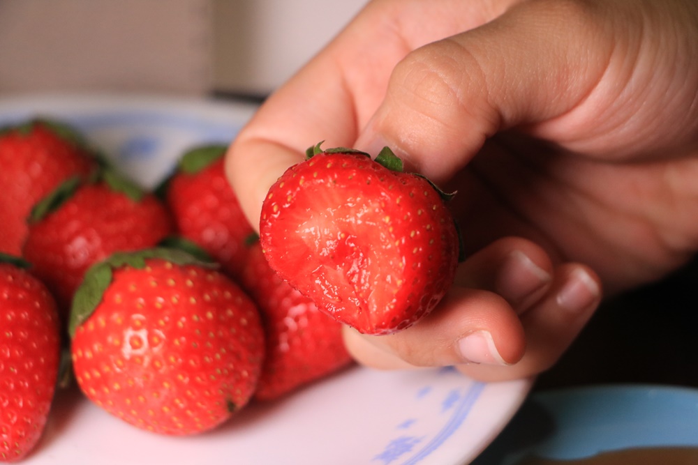 草莓本來就酸,草莓蜜酸中帶甘甜,沾著吃風味更佳。 一入口草莓香氣四溢,忍不住一口接著一口,要不是想留給家人吃,Hank媽一次嗑完一盒也沒問題。