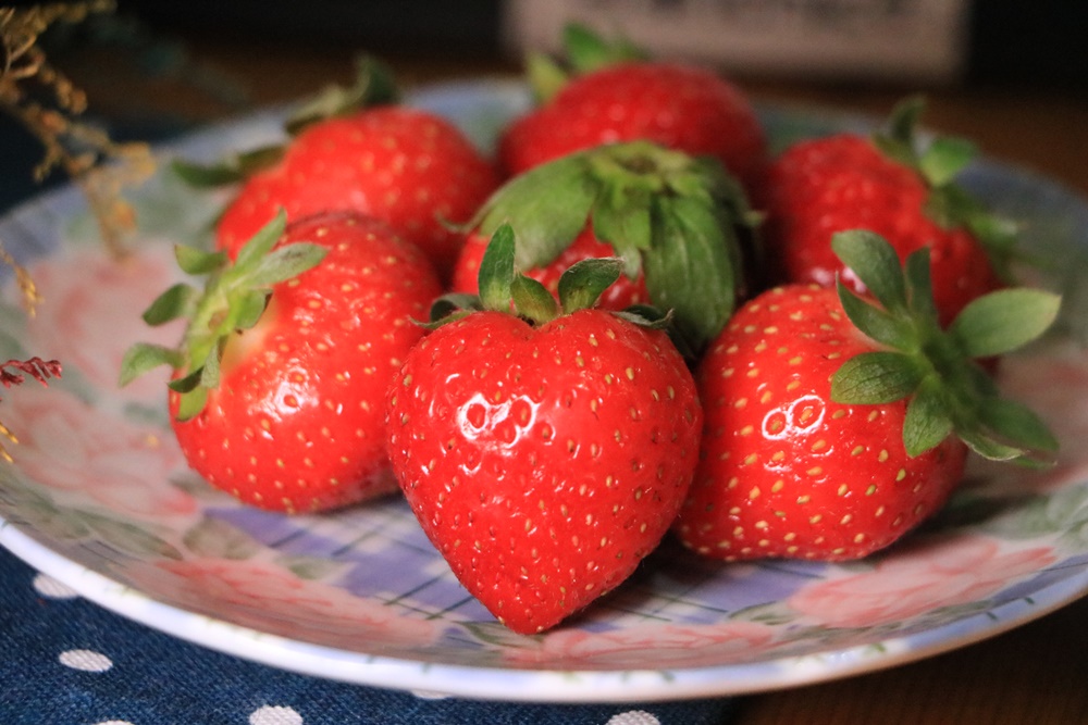 新鮮草莓怎麼看??!! 有閃閃光亮的表面,還覆蓋著一層細細的白色絨毛,這是新鮮的標章。 草莓富含維他命c,大約是蘋果、葡萄的7~10倍,還有葉酸、鞣花酸等營養,鮮美紅嫩,果肉多汁,又稱水果界的皇后。