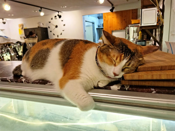 Toast Chat總共有五隻店貓,我去的時候看到貓咪們有的在冰櫃睡覺,有的跑到椅子上跟你做鄰居,甚至會跟你討摸,模樣非常可愛討喜,不知不覺心情也療癒了起來~