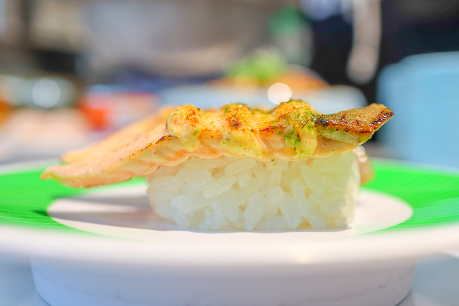 鮭魚滑潤的油脂與肉香是大家最愛鮭魚的原因,搭配著醋飯的香甜,第一道就很開胃