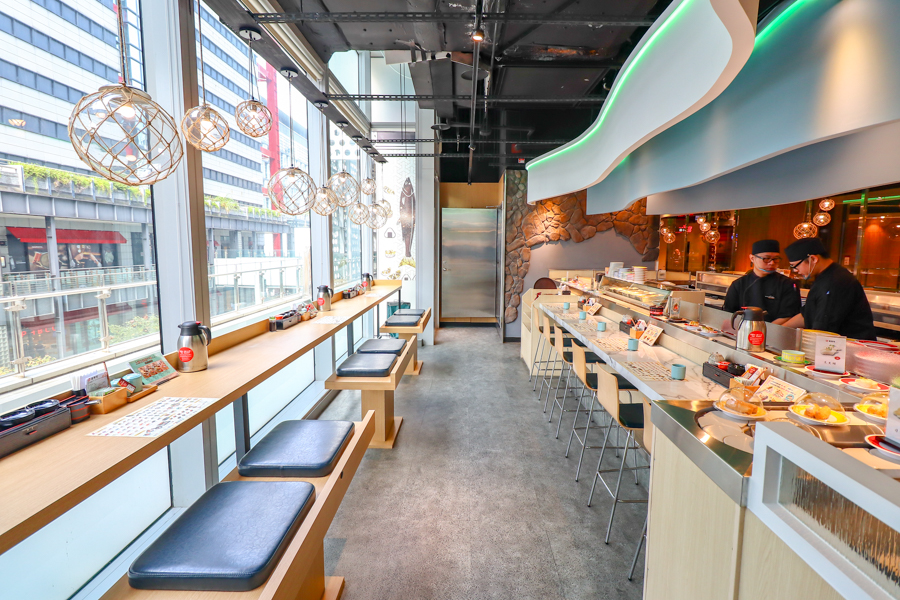 快快找個舒服的位子坐下吧,卡夫卡最喜歡靠窗的位子,可以觀看徒步區的人潮,慢慢品嘗美味的握壽司