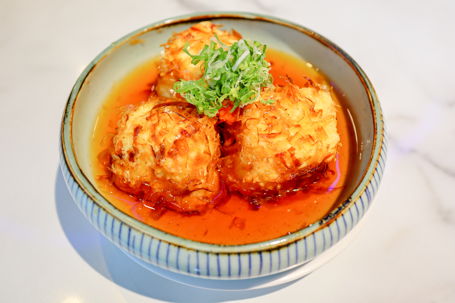 鮮嫩的豆腐炸過後,外皮微帶酥脆,撒上點柴魚和蔥花,夾起一塊豆腐沾點日式醬汁,清爽的豆腐香氣和濃郁迸發出來