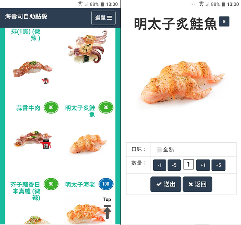 透過手機點餐,所有餐點名稱、價位一目了然,在選定喜歡的餐點後,還可以小調整數量和口味。