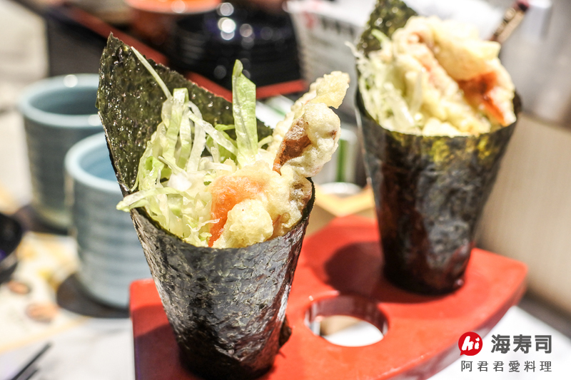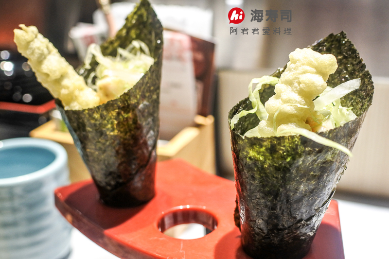 酥炸軟殼蟹手卷,海苔+生菜+酥炸軟殼蟹+美乃滋,吃起來卡茲阿滋的,清爽不油膩。