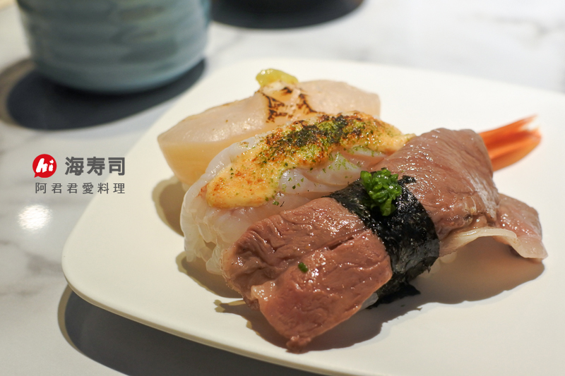 饕客首選TOP1。炙干貝+炙天使紅蝦+鹽之花炙和牛