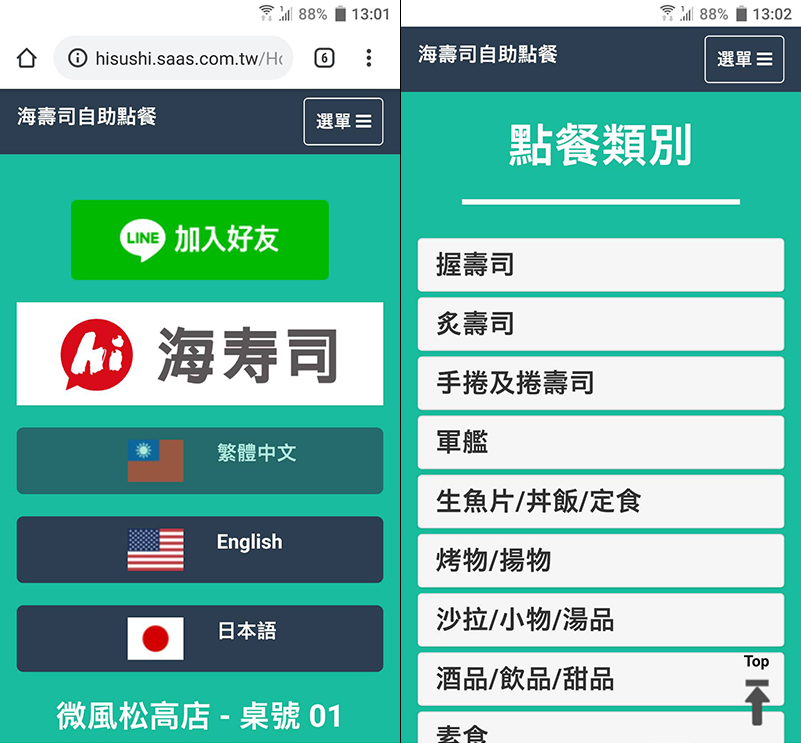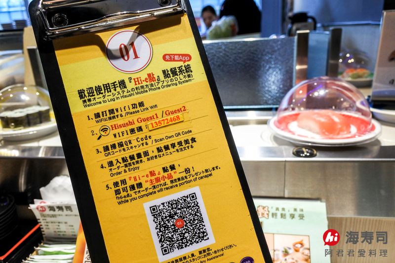 海壽司的用心還能從點餐系統裡看到,不管是坐在吧檯區還是坐靠窗座位,每位客人只要拿出手機,打開WIFI後刷QR CODE,就可以透過『Hi-e點』點餐系統點餐,成功點餐的人再多贈送“主廚小品”一份唷!