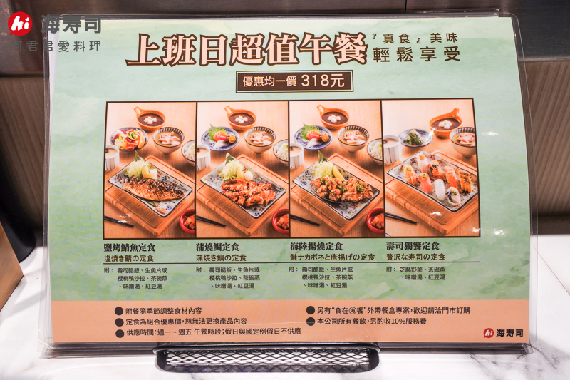 海壽司現在也有推出上班日超值午餐定食的選擇,週一到週五期間限定,看起來也很不錯,不如下次部門聚餐就選海壽司吧!