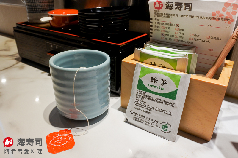 開動前來杯熱茶暖暖手心同時也暖暖胃,海壽司這邊提供的是天仁茗茶綠茶茶包。