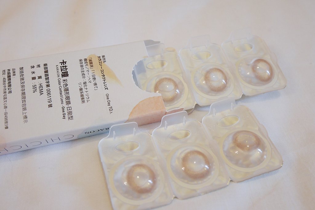 這款甜桃棕,是我覺得這三款中最需要化妝的隱眼