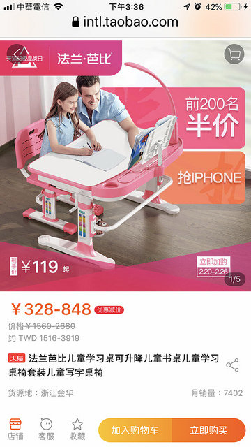 像這樣一張成長型書桌的淘寶價格折扣完之後是434,再加上書桌國際運費平均每張約149RMB