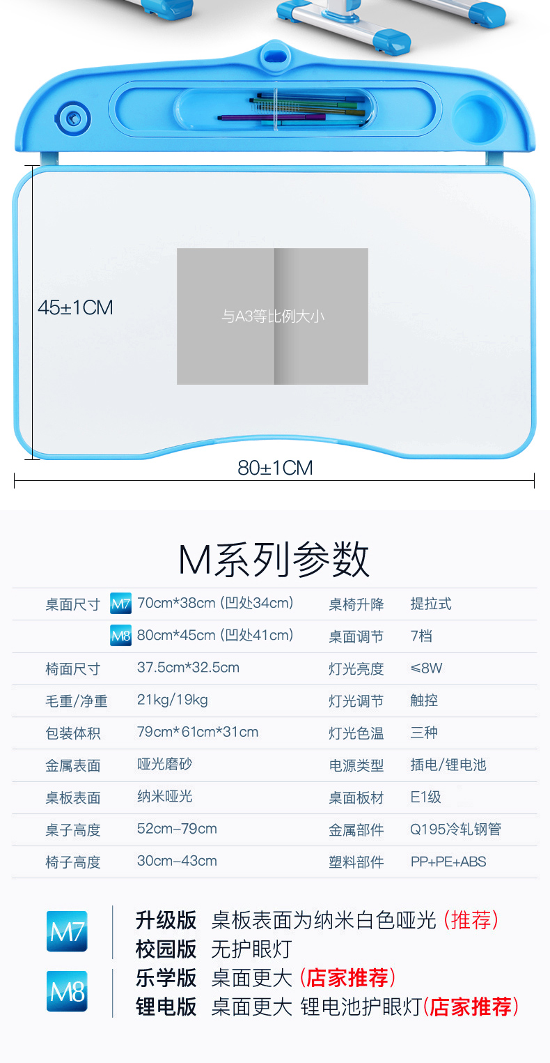 這款書桌的桌面有70cm、80cm、90cm三種不同的尺寸,我們購買的是M8樂學版,折扣完後的費用是RMB434。