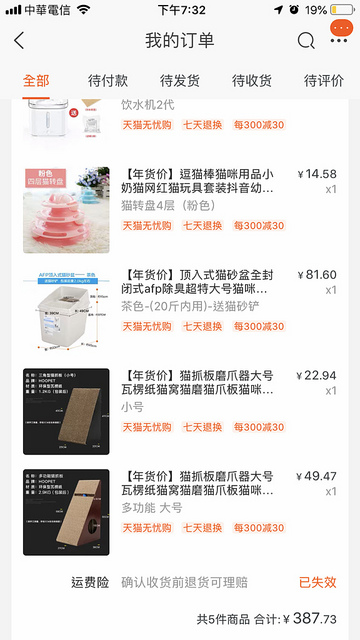 貓抓板等比較大型的貓玩具。結果我覺得貓玩具的體積太大,最後運費比想像的還要貴阿~~
