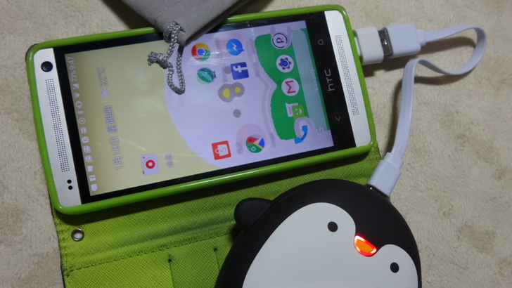 【▼】若是將Type-A轉接的microUSB接到行動裝置上(如手機),就會變成手機上的電給企鵝作充電,此時企鵝鼻子會亮起紅燈,紅燈長亮時會充電狀態,而正常使用顯示紅燈閃爍時就代表是電量不足的狀態。
