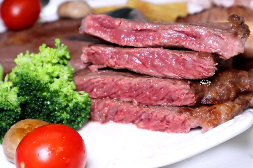 這天切開牛排後,發現大約只有3分熟,本來擔心家人不敢吃這麼生,沒想到家人對這個肩胛部份的軟嫩讚譽有加。