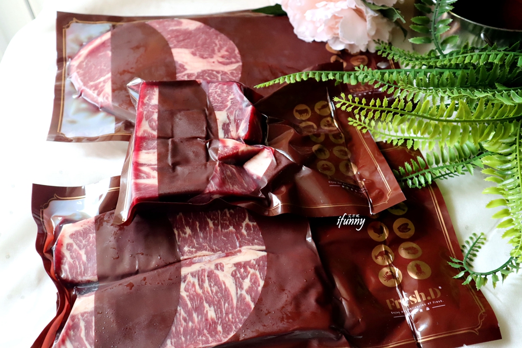 鮮定食品Fresh.D提供各式各樣嚴選食材宅配到府,有日本和牛、美國安格斯牛、進口冷凍水產等頂級的食材。這次艾方妮挑戰PRIME級安格斯牛排組合,選自美國牛肉大廠ipb特選高品質安格斯黑牛, 有美國精選Prime級肩胛牛排 、美國極品霜降骰子牛及翼板牛排,再搭上波爾多紅酒,不用去餐廳排隊,在家就可以享受燭光晚餐及浪漫氣氛。