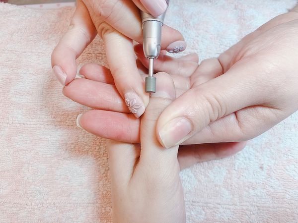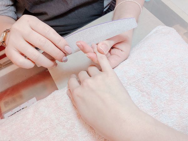 酒精消毒過手後會先替指甲修型、修剪甘皮、拋磨使指甲維持乾燥
