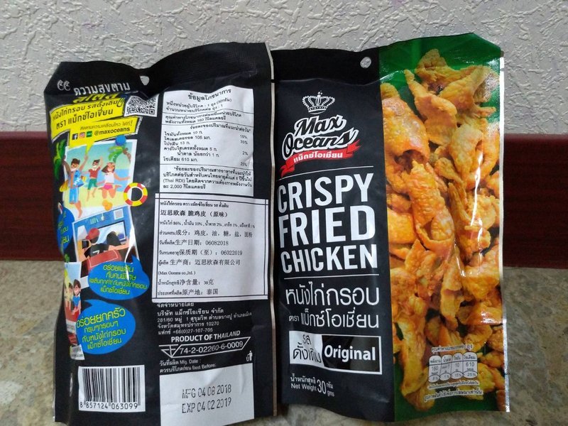 精美的包裝上就有看起來很好吃的雞皮照片,