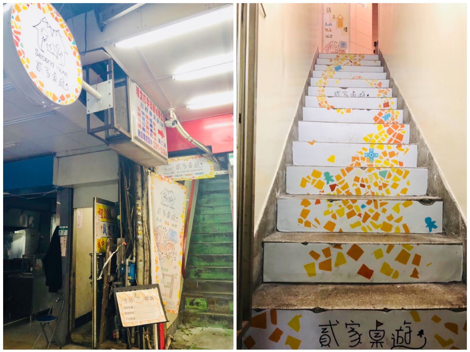 樓梯快到的半段就有貳家桌遊的LOGO,繼續往上走就對啦
